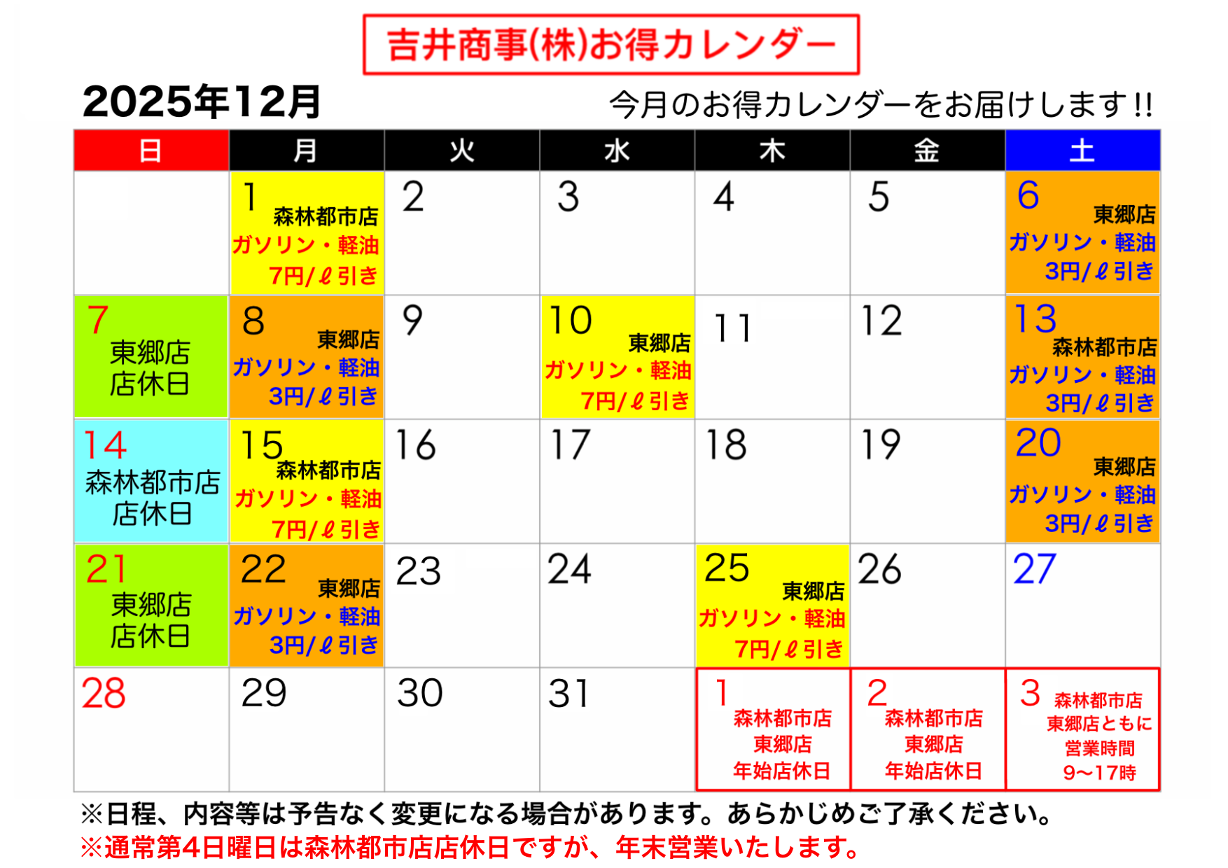 2025 年末の洗車施工・配達スケジュールのお知らせ