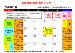 下記が2026年1月の燃料お得カレンダーとなります。
